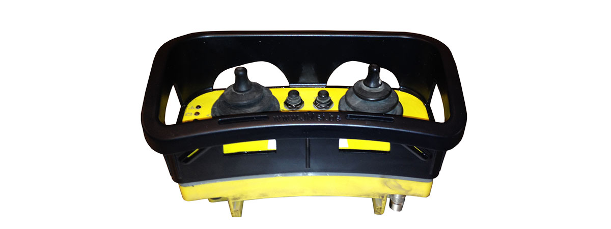 The Safeball safety remote control includes an ergonomic redundant safety ball (two push buttons).